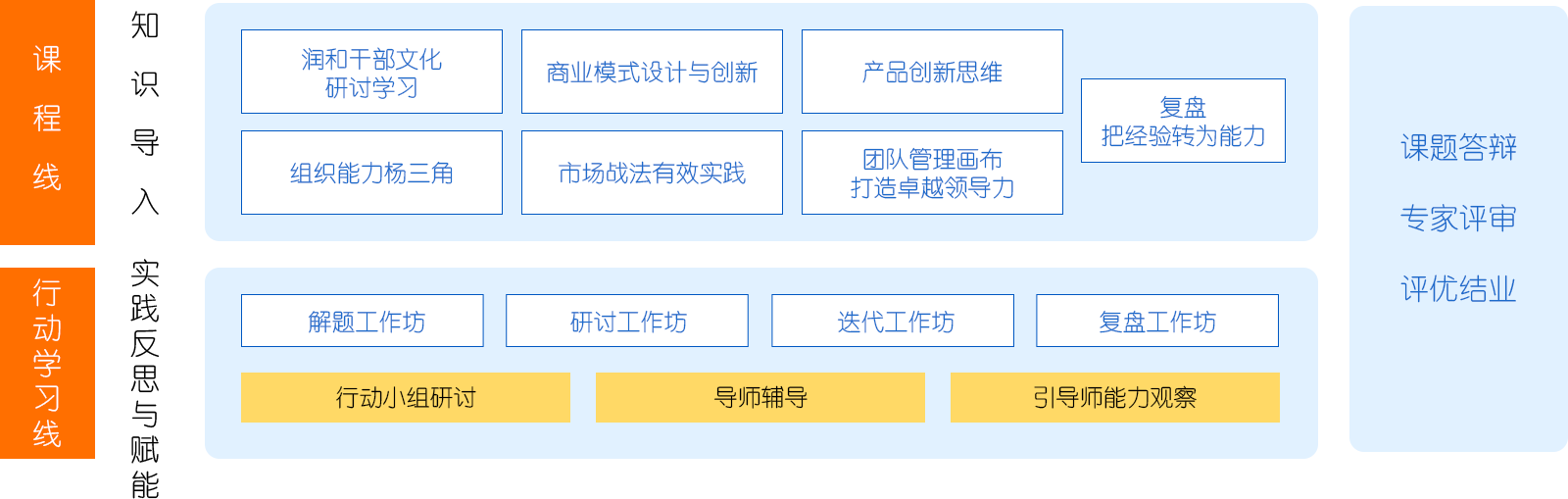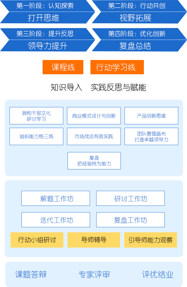飛將MTP是承接公司人才戰略的青年干部培養項目,旨在打造公司領導梯隊,提升組織創新變革能力。項目為期一年,采用行動學習線和課程導入線雙線并行的培訓機制,結合崗位歷練等定制化內容,從市場洞察、商業模式、組織能力、業務領導力、產品創新思維等方面助力學員不斷提升、超越自我。
